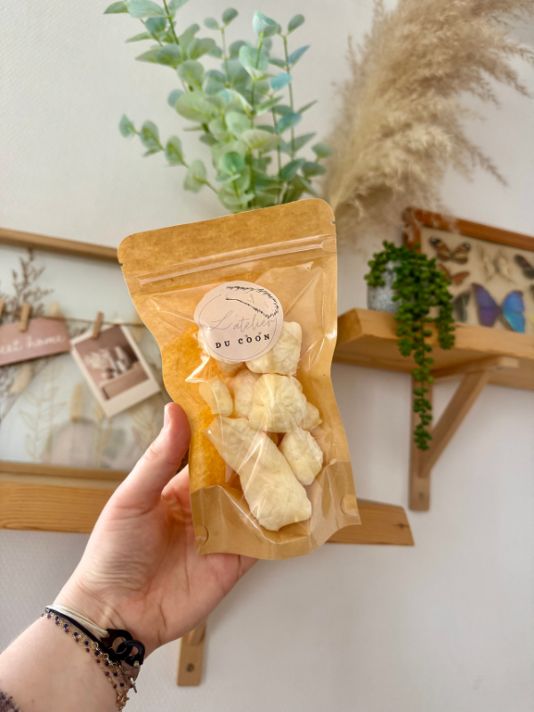 Une friandise artisanale à base de 100% lait, soufflée à la main par moi même pour une texture irrésistible.