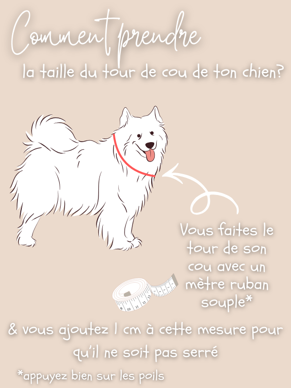 Chaque collier étant réalisé sur-mesure, il est très important de bien mesurer le tour de cou de votre chien.