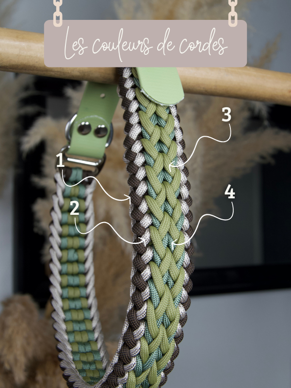 Choisissez la couleur du biothane en 25mm ajustable et les 4 couleurs de cordes (voir photos produits).