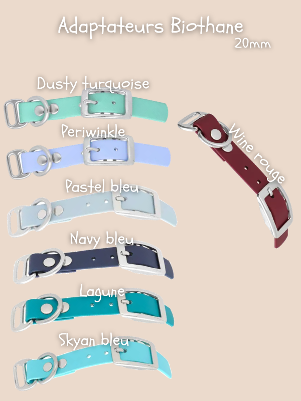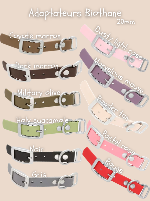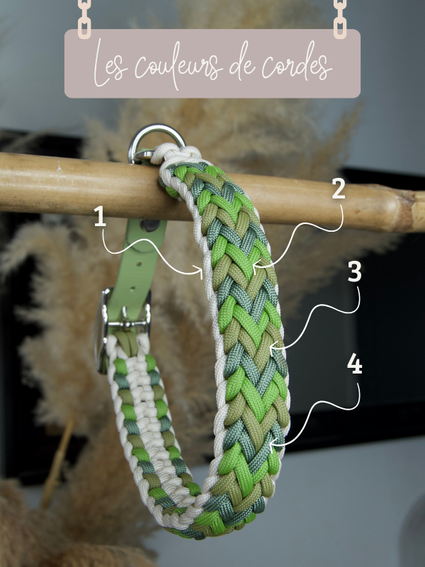 Choisissez la couleur du biothane en 20mm ajustable et les 4 couleurs de cordes (voir photos produits).