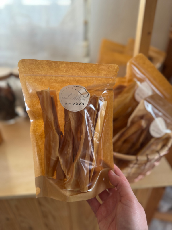 Nos peaux d’agneau sont 100 % naturelles, sans additifs, colorants ni conservateurs. Elles sont soigneusement séchées à l’air pour préserver toutes leurs qualités nutritionnelles, leur texture croustillante et leur goût irrésistible.